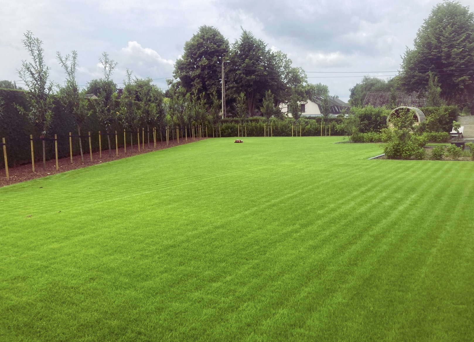 Een mooi gazon vraagt soms wat extra zorg. Daarom renoveren we gazons door te verticuteren en door te zaaien, zodat kale plekken opnieuw kunnen dichtgroeien en het gras weer sterker wordt. Is een gazon toe aan een nieuwe start, dan werken we met grasmatten van hoge kwaliteit, die zorgen voor een snel en mooi resultaat. Daarnaast zaaien we opnieuwe gazons in. Ook bemesting krijgt de nodige aandacht, afgestemd op bodem en gebruik. Zo kan elk gazon rustig uitgroeien tot een zacht, groen en gezond geheel.